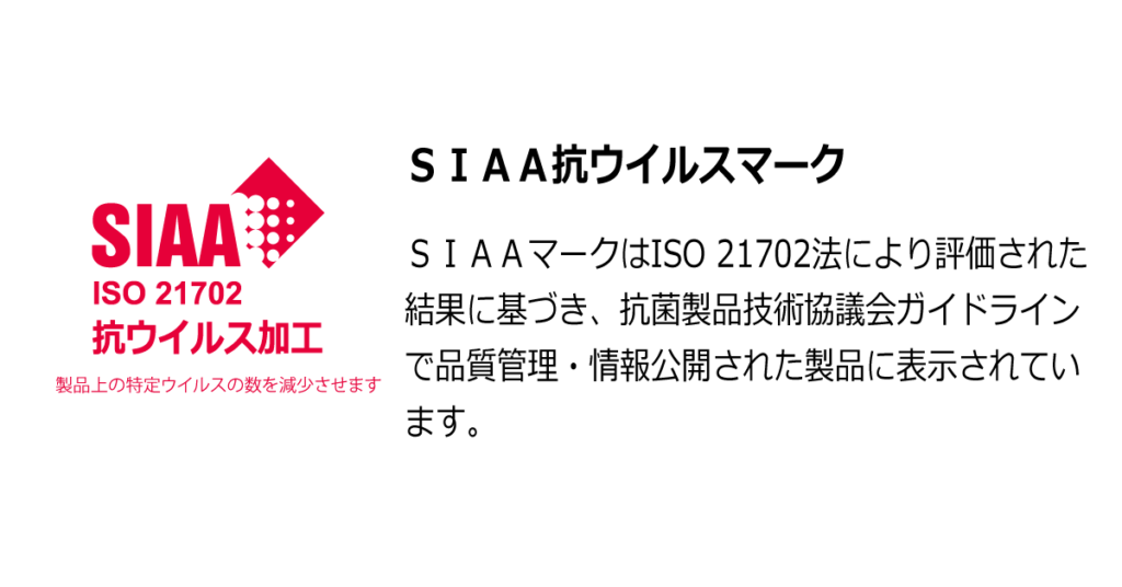 ※抗ウイルス加工は、病気の治療や予防を目的とするものではありません。