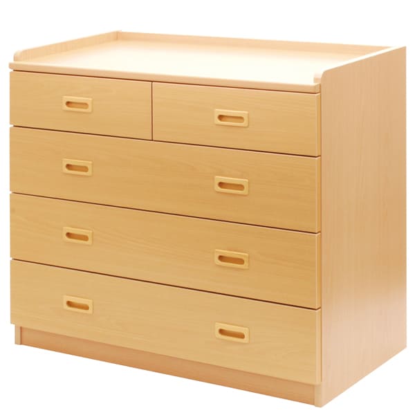 天板の3方は転がり止め、引出し(小)2杯、引出し(大)3杯を設けています。